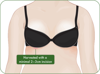 Using a minimal 2–3cm incision under the breast line, scarring is minimized and cartilage is harvested quickly with a safe, experienced method that avoids pneumothorax risk.